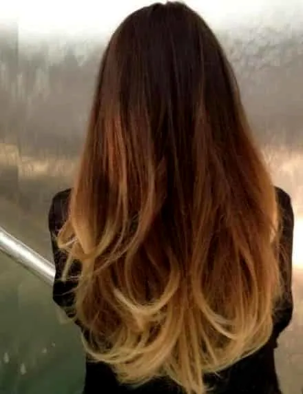 小编点评:金黄+黑色渐变色染发,厚重的发尾波浪卷,幽静的气质,散发着知性美。