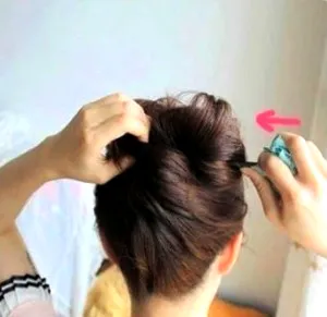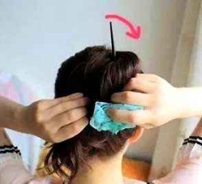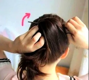 步骤三:接着用发钗把整个发束内扭转起来。