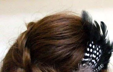步骤七:最后夹上一个小羽毛发饰发夹,再整理下发辫就行了。