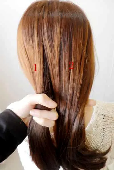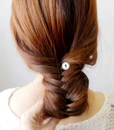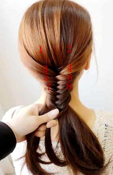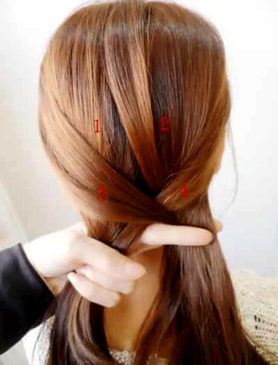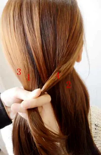 步骤三:如图所示,首先将标有3、4的头发往到中间并且相互交叉。