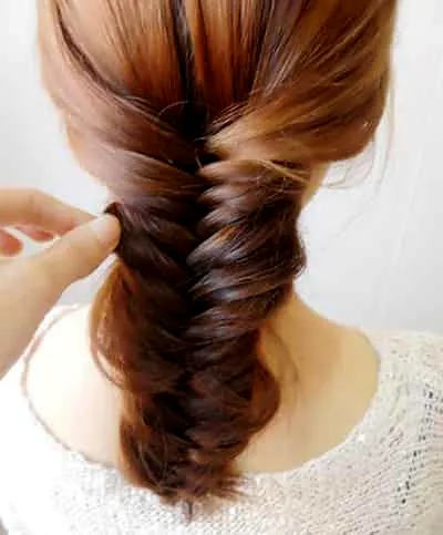 步骤八:头发固定好后,用手将已经编好的头发一缕一缕的拉松,让头发打造出一种蓬松感。