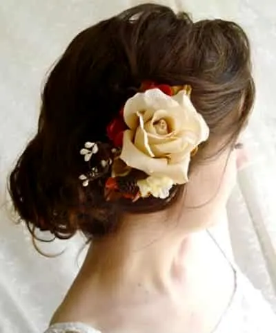 娇艳花朵装扮唯美新娘发型 浪漫高贵新娘盘发发型图