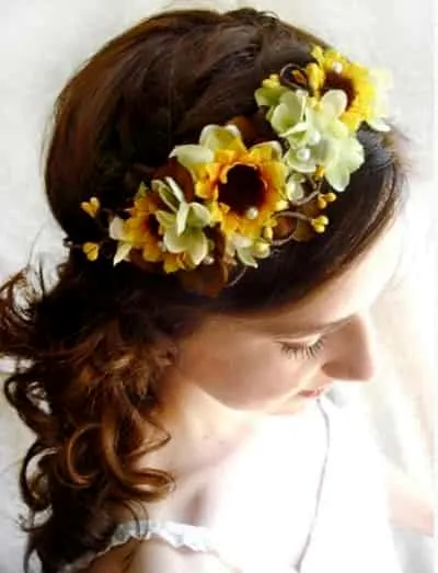 小编点评:小向日葵花束的装扮新娘发型,可能不会显得那么奢华,但却显得格外的小清新。