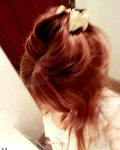 步骤四:然后用发夹暂时将头发固定在头顶。