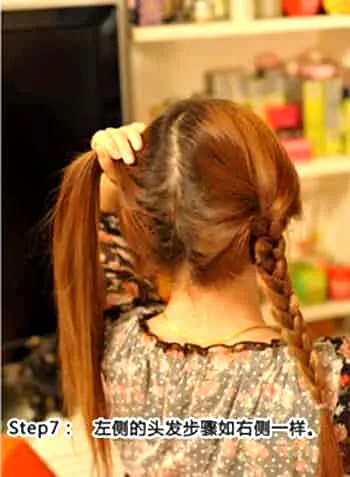 步骤七:继续将另一侧的头发抓高。