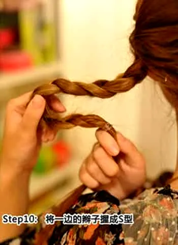 步骤十:将发辫折成S形。