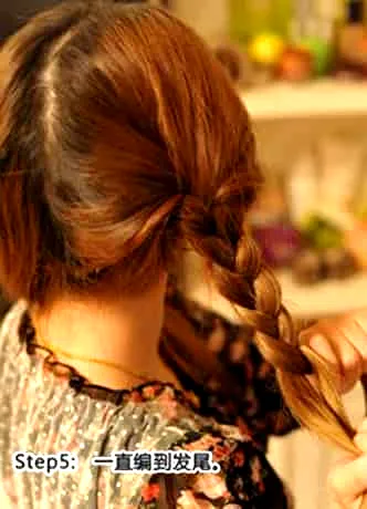 步骤五:将头发一直编到发尾。