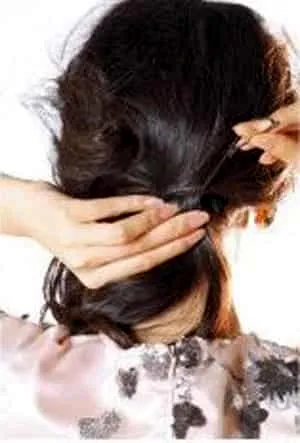 步骤二:然后将头发扎成一个低马尾。