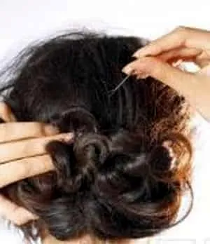 步骤五:将发辫盘成一个圈,用发夹固定在后脑勺处。
