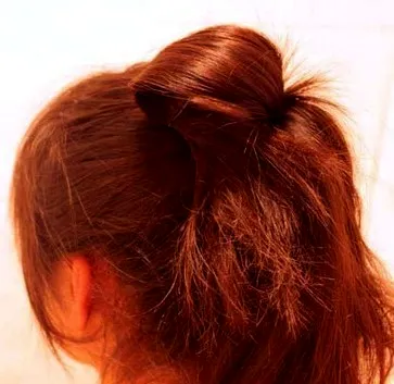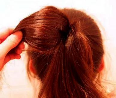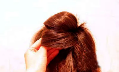 2013年最新甜**苞头发型步骤二:接着在马尾上取出一小束头发,用手提起来。