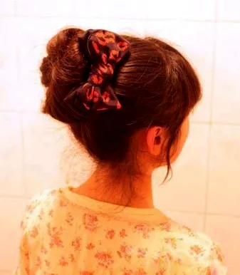 2013年最新甜**苞头发型:**的高扎花苞头,含苞待放的花朵,配上漂亮的发饰发夹给发型增添很多的色彩,下面跟着小编一起来学习吧!