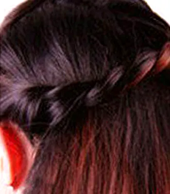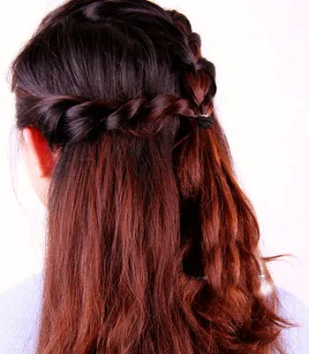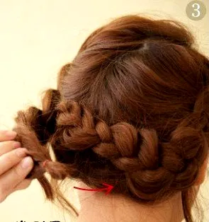 步骤三:然后把这两束头发扭转起来,交缠成发辫。