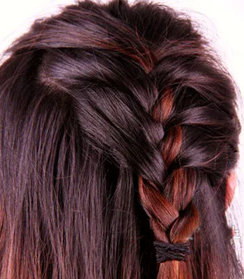 步骤一:首先我们把头发梳顺,再把头发右边顶部的少量头发扎成一个蝎子辫发辫。