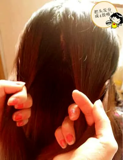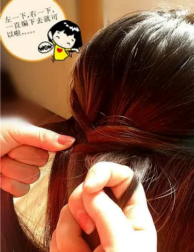 步骤五:然后按照左一下,右一下的编发手法将头发一直编下去。