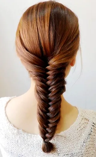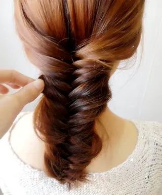 步骤四:按照这样的编发步骤,将头发一直编到发尾处。