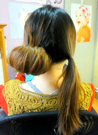 步骤七:将另一边的头发用同样的步骤扎好。