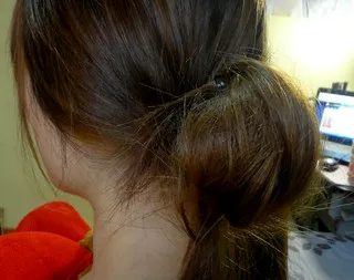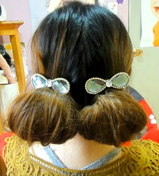步骤五:取黑色小发夹将头发固定好。