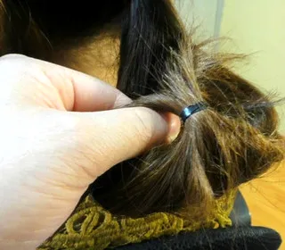 步骤三:用小皮筋将马尾的发尾绑起来。