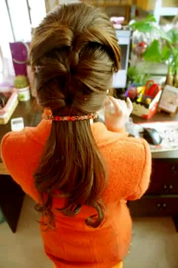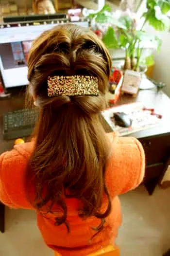 步骤6: 或者将下面的头发散发,这样夹个横发夹也很不错呢。