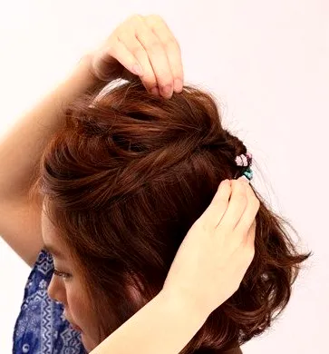 名媛气质显瘦短发编发步骤三:然后把扭转好的发辫拉至脑后的位置。