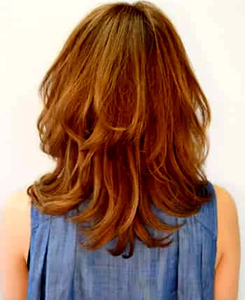 头发经常出现外翘现象,可以在发尾处用卷发棒稍微内卷,这样能营造出甜美的感觉。另外,层层内扣的发尾会让脸部看起来更瘦。