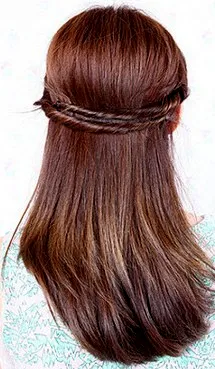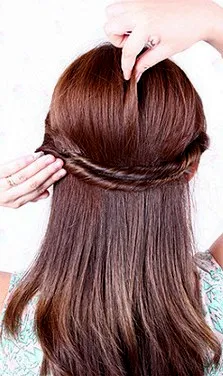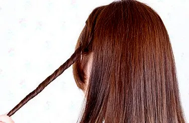 第二步:先将其中的一束头发往斜后方扭卷起来,一直要扭到最后的发尾部分。注意事项,扭转的时候注意松紧度,紧实一般即可,不然会显得不自然。