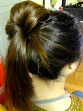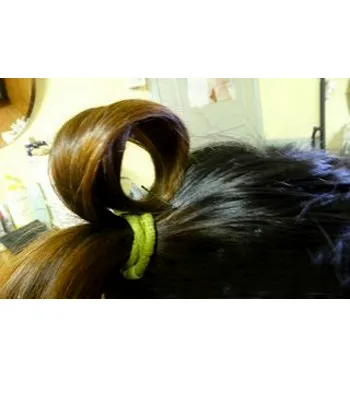 Step2:从马尾里挑出一束头发往内卷,然后用夹子固定好。