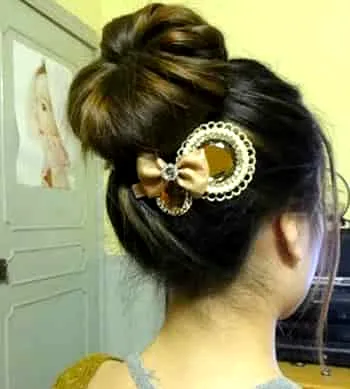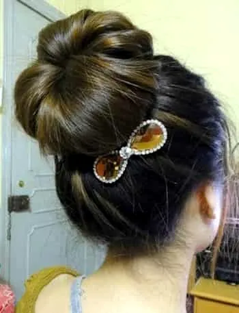Step5:当你把头发全部夹好后,一个花苞头就出来了。