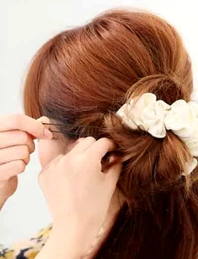 步骤五:将准备好的U型夹子将凌乱的发丝固定好,更明显的花苞头发呈现出来。最后在稍微做下最后的调整,**发丝已经固定好。