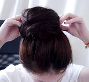 Step5:发量少的女生扎出来的**头就会小一些,想要大一点就要准备一个**头假发。