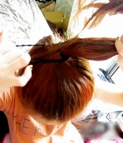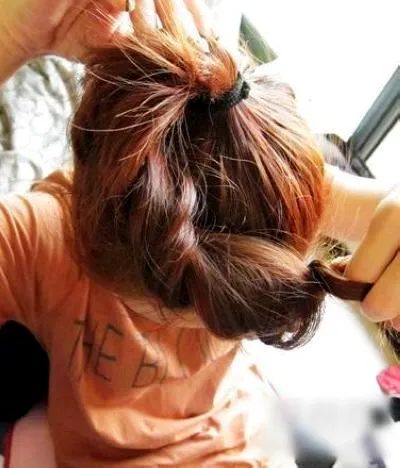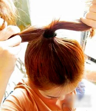 Step2:用皮筋将头发扎成马尾,注意不要太松垮。