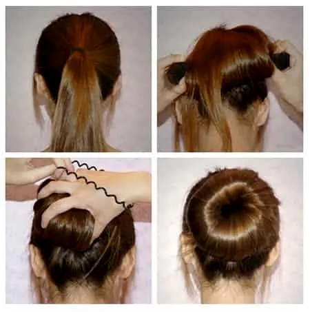 Step2:盘发器一定要根据自身头发的多少来选择,大了小了都很难扎成花苞的。