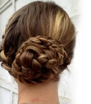 步骤3.分别将两侧的辫子缠绕在中间的发髻之上,最后用小卡子固定。