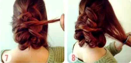 步骤7:刮毛后,可以将头发压在麻花上,缠绕过麻花,用发夹固定在麻花内部,隐藏起来。