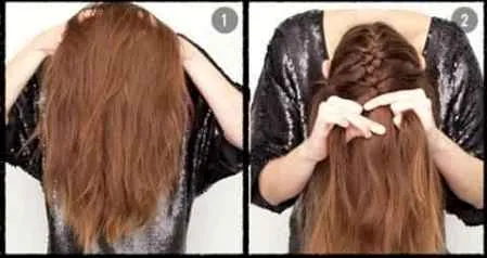 步骤二:从后脑勺开始往前编一个法式(蜈蚣辫)麻花辫。