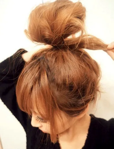 步骤一:用手梳理好头发,在头顶处扎一个高高的马尾,用手梳出来的发型相对梳子要自然很多。