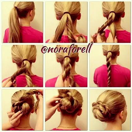 步骤1:先将头发扎成光洁的马尾。