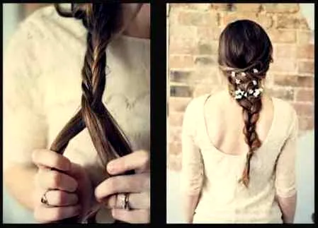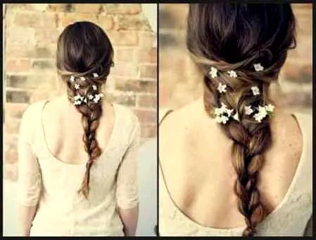 第4步:编发不要太紧,中等松散感,编完用皮筋扎好。最后,点辍上一些野花。很有春天的气息吧?
