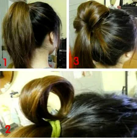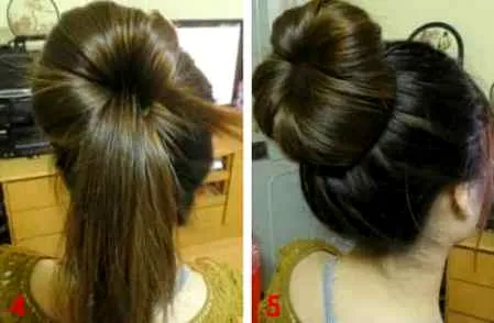 3.重复上面的步骤,继续把头发依次从旁边盘好。