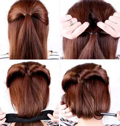 Step2:然后在马尾的上方挖一个洞,将马尾从洞里往下穿出来,如图。