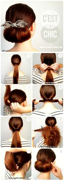 步骤八:将发尾塞进皮筋里面,用小黑夹固定好,最后戴上喜欢的发饰就大功告成啦!是不是看上去无比清爽呢!