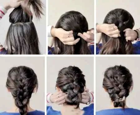 步骤二:接着把发束分成三份,先编几层简单的麻花辫。