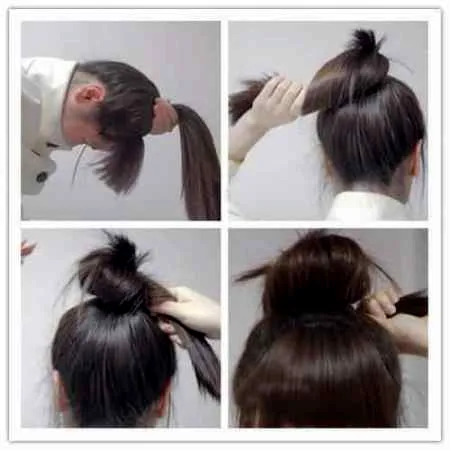 Step6:将多余的头发用手塞进去。