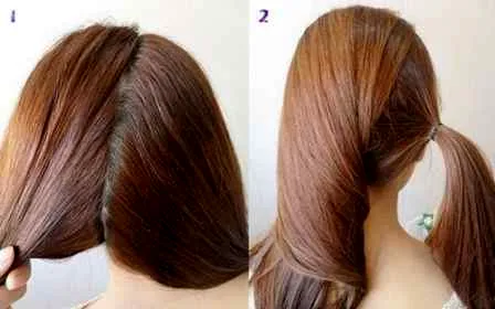 步骤二:将右边头发在耳朵旁扎一个马尾,左边梳开,盖住分界线。