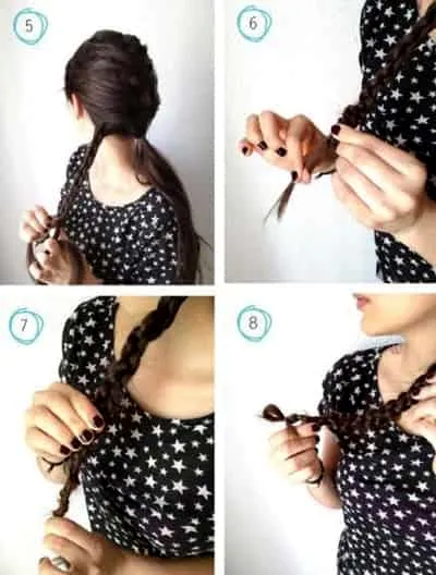 Step8:用一个小的皮筋将辫子固定起来,收紧所有的头发。