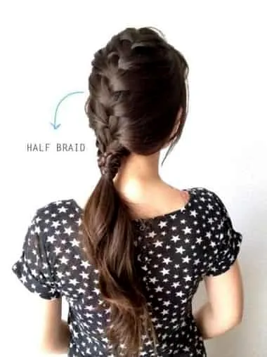 Step3:编了大致的形状后,就可以将所有的头发一起编进去,编成一个蜈蚣辫。