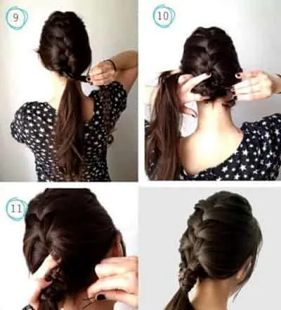 Step9:把这个辫子从上往下绕着马尾转起来。