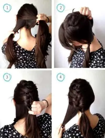 Step2:把头顶上方区分出来的头发开始编辫子,如图。