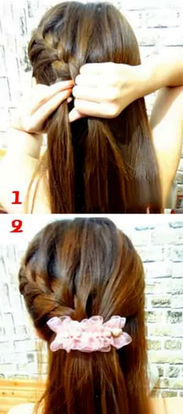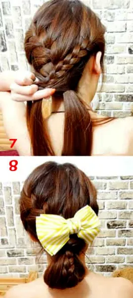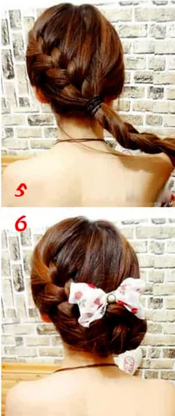 第四款:步骤一、二不变,剩出右边的头发编成辫子,然后圈住固定的头发,第四款发型就出来了。是不是一目了然呢,你学会了吗?(编出效果如图6,7)