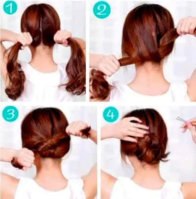 步骤二:接着把两束头发交叉打一个结,效果如图所示。